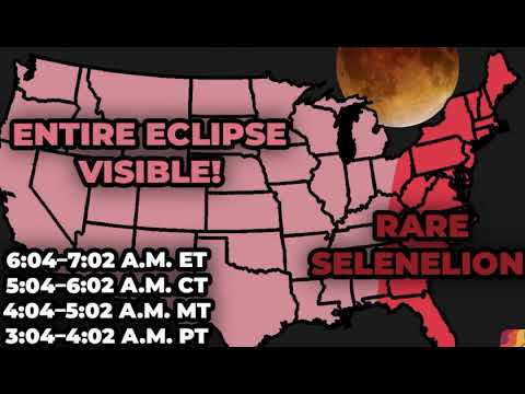 For everyone in the United States, expect to see the moon transform into a brownish-red rust as it slips into the Earth’s shadow. Totality lasts 58 minutes.
